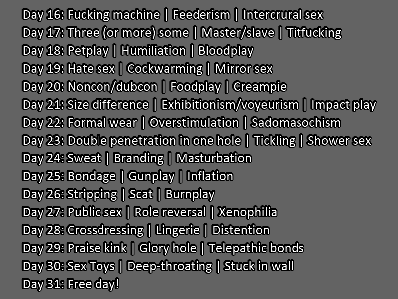 Kinktober2022 V Twitter Here It Is Check The Thread For Prompts And A Pastebin Https T Co 6ztl2jyz9z Twitter